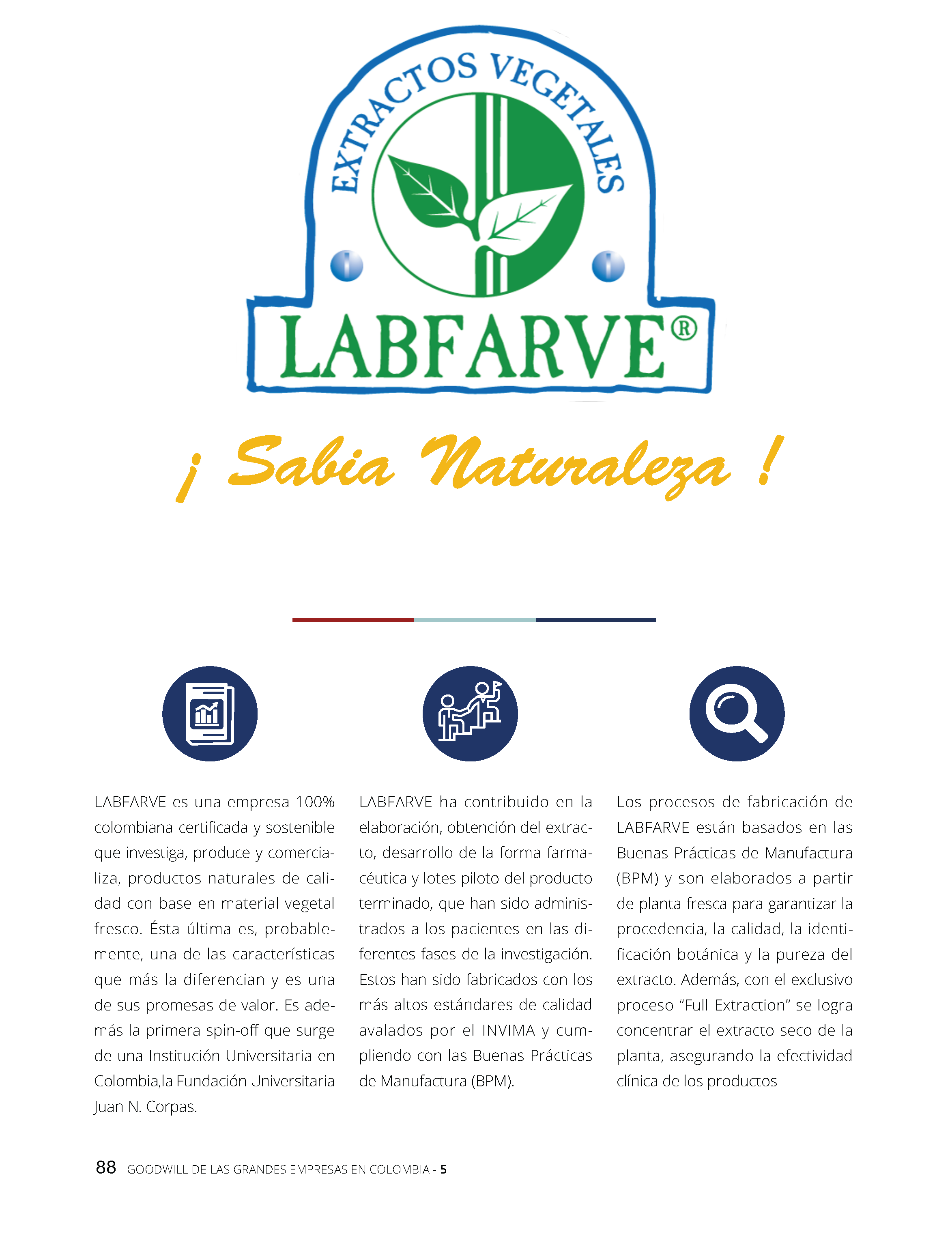 La Fundación Universitaria Juan N. Corpas y el Laboratorio de Farmacología Vegetal (LABFARVE) se enorgullecen de haber sido incluidas en la más reciente publicación de GOODWILL DE GRANDES EMPRESAS EN COLOMBIA Y CÓMO LO LOGRARON, Quinta Edición.